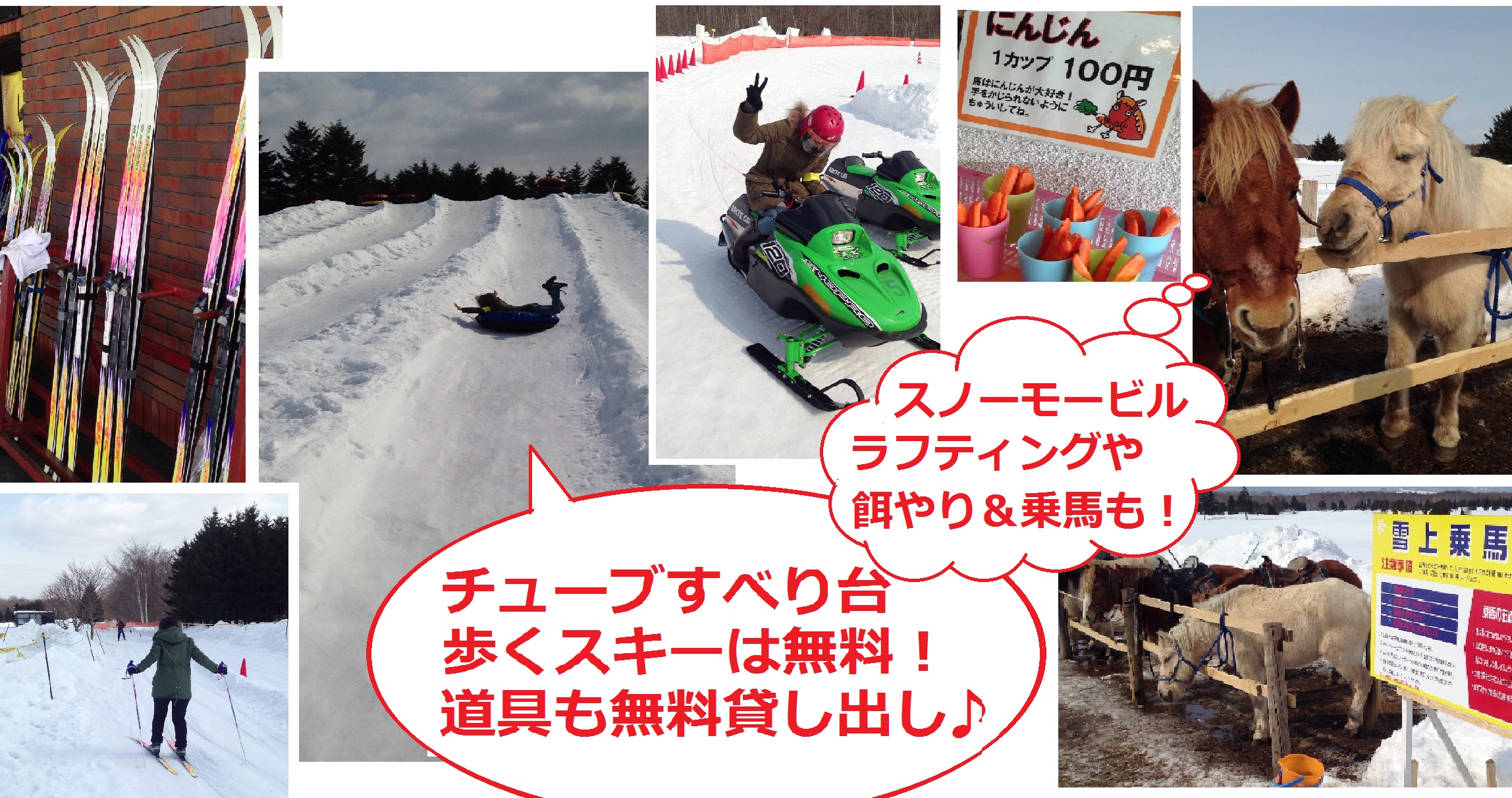 スノーモービルやスノーラフティング、乗馬などの 有料