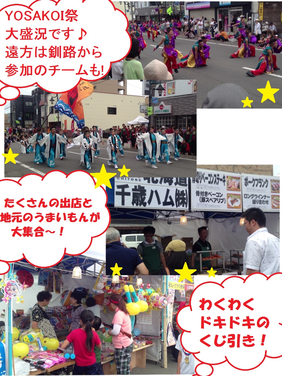全道から集結したYOSAKOIチームによるトーナメント及びパレードを見る事が出来ます!会場内には飲食ブースが出店し、4大ビールメーカーのビールや地ビールなどを味わうことができます!!期間中に千歳にお越しの際は、ぶらっと立ち寄られてはいかかでしょうか☆